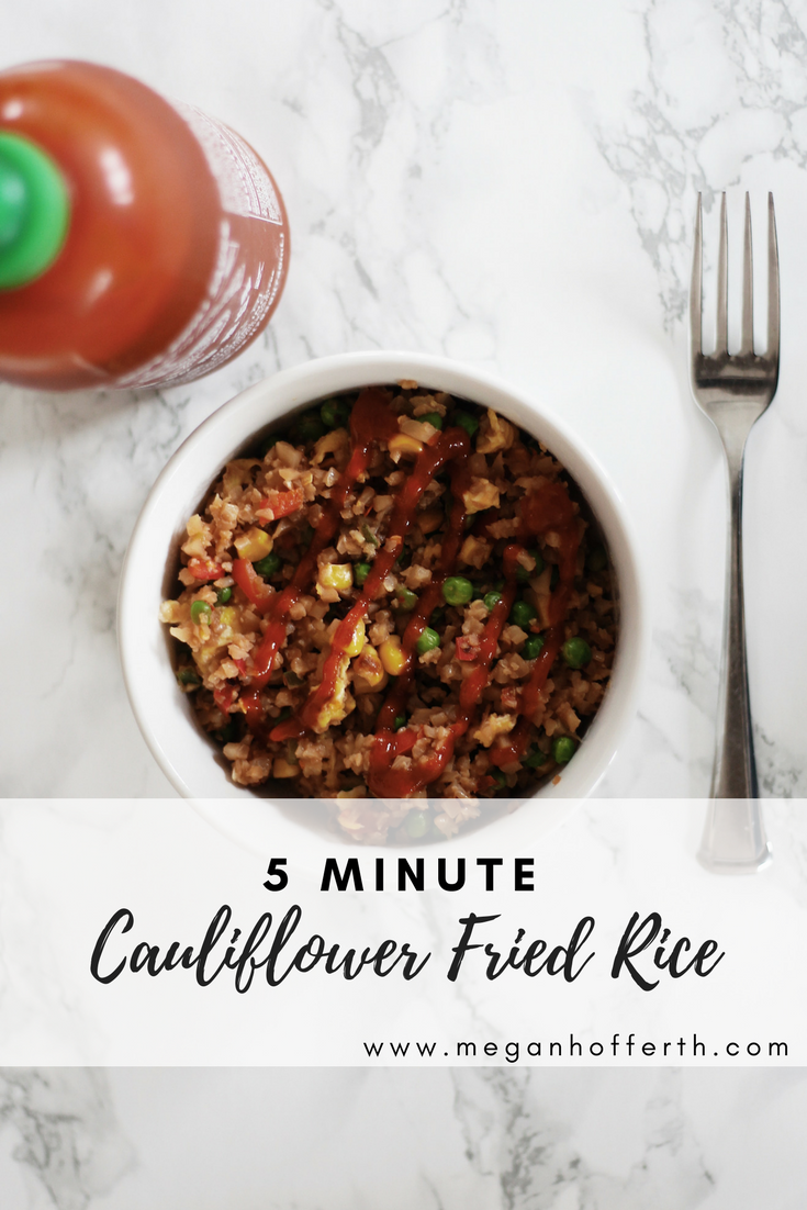 Then I discovered Trader Joe’s Riced Cauliflower Stir Fry and my life changed. It’s the perfect mix of cauliflower & fried rice essentials including peas, corn, and scallions. With some time and experimenting I have created the most delicious cauliflower fried rice recipe that takes only 5 minutes to whip up. Trust me, you’re going to want to try this.