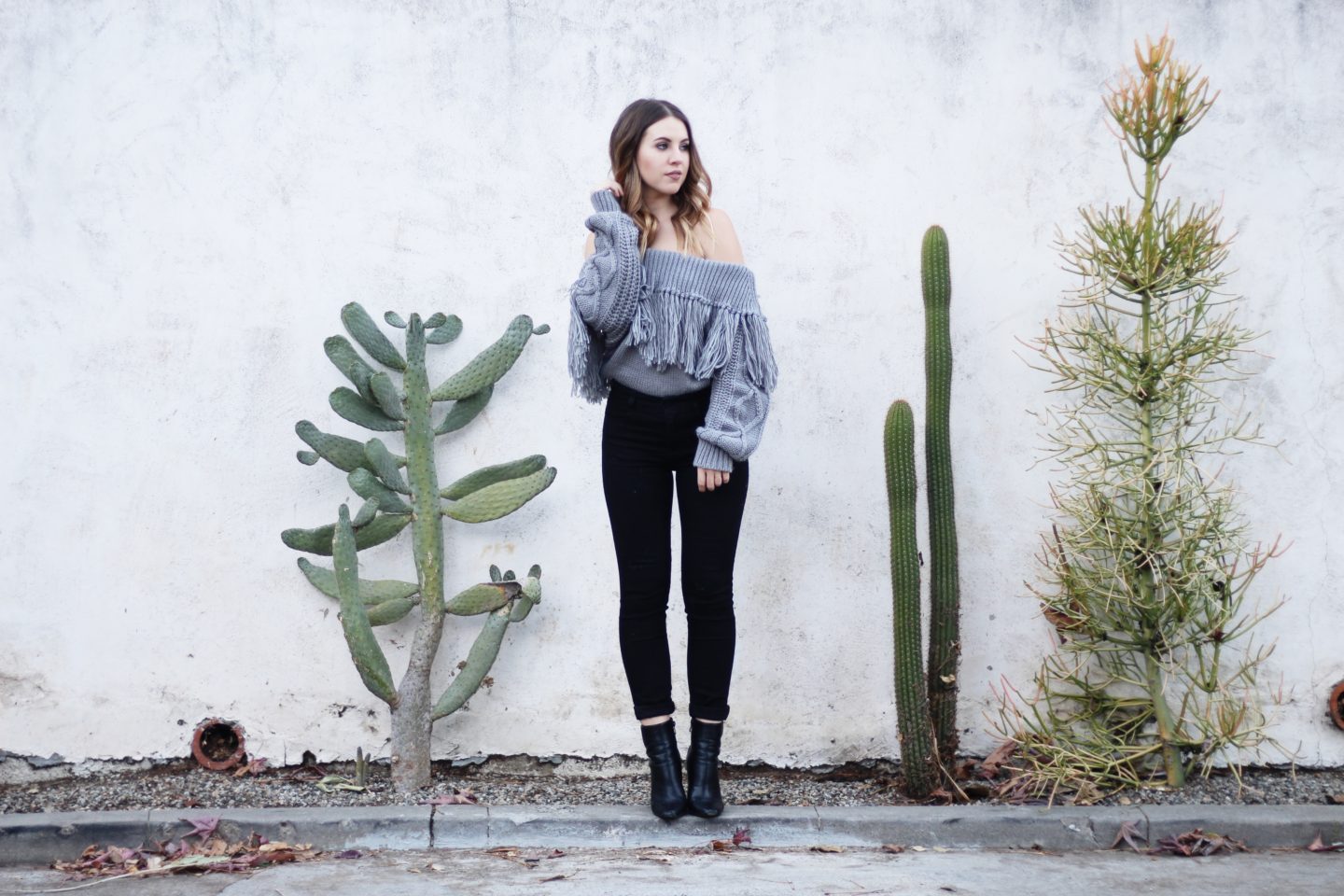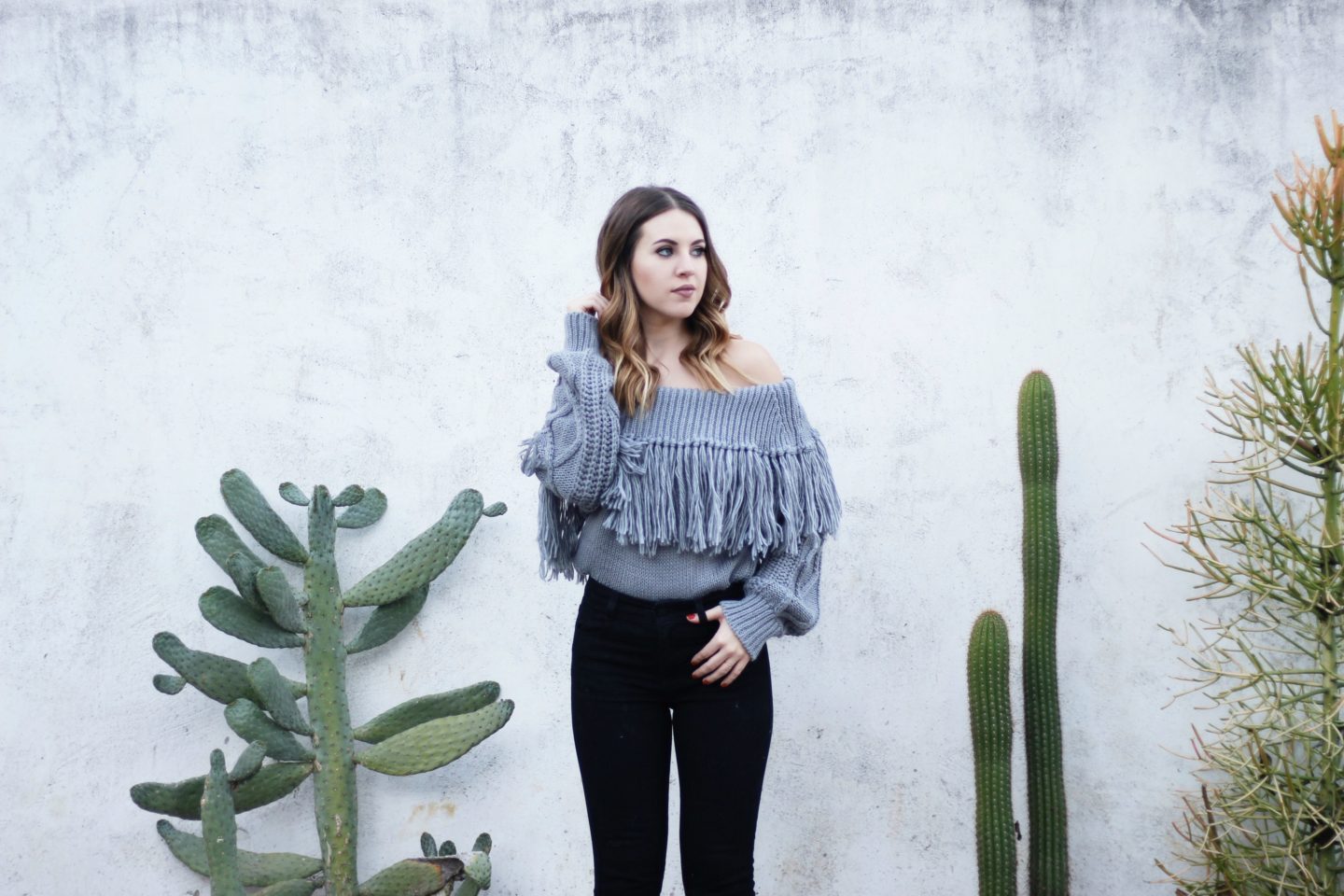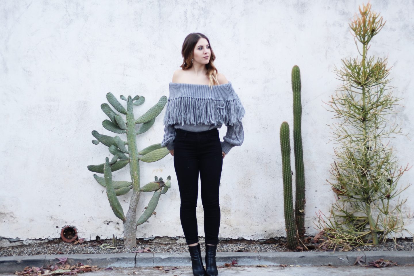 Nothing is worse to shop for than denim. One pair fits your thighs, but is too big in the waist. One pair fits your perfectly, but is 6 inches too long. One pair could maybe fit your waist if you could just pull them over your booty. It’s never-ending. When you find that perfect pair of jeans, BUY THEM. Even if they are a bit more than you’d normally spend, stumbling upon the perfect pair of jeans is hard to come by. When I found the jeans featured in this outfit, I knew I had to purchase them. I have SO much trouble finding jeans that fit my waist, butt, & are the correct length (bonus points that they are the perfect high-waist). When you find that perfect pair, splurge. And buy them in every color.