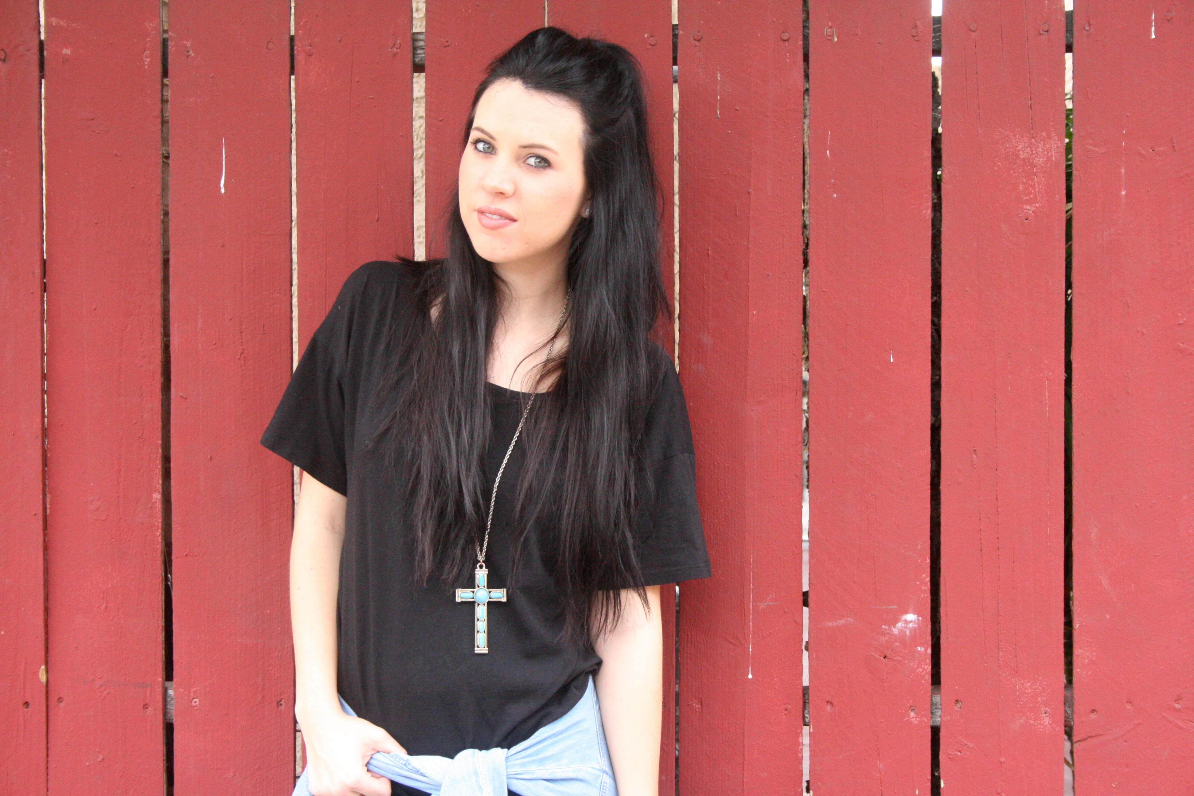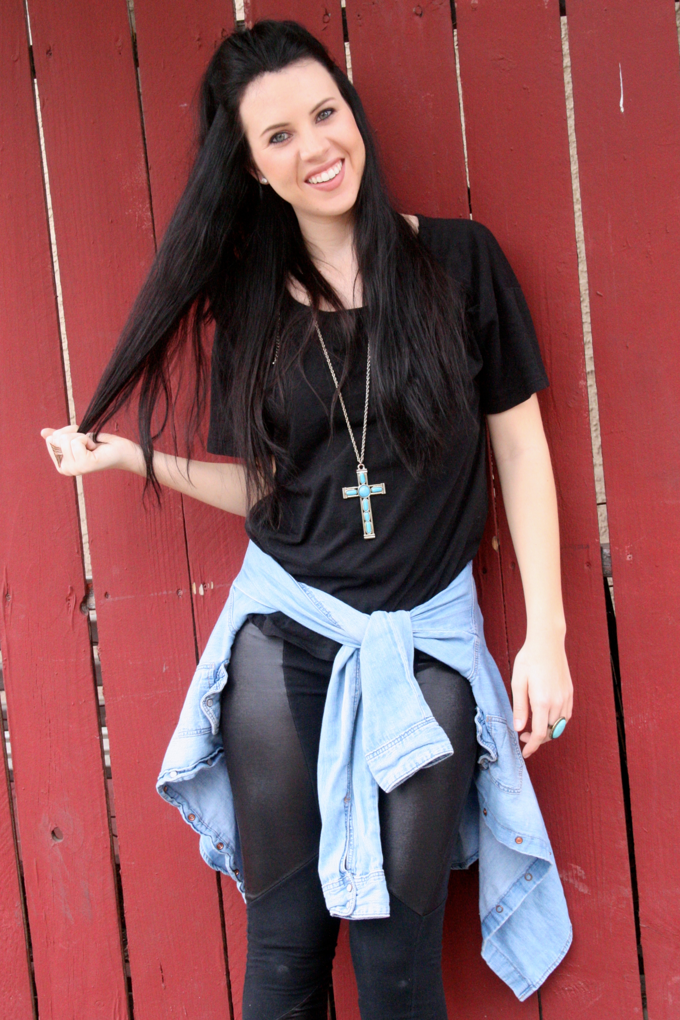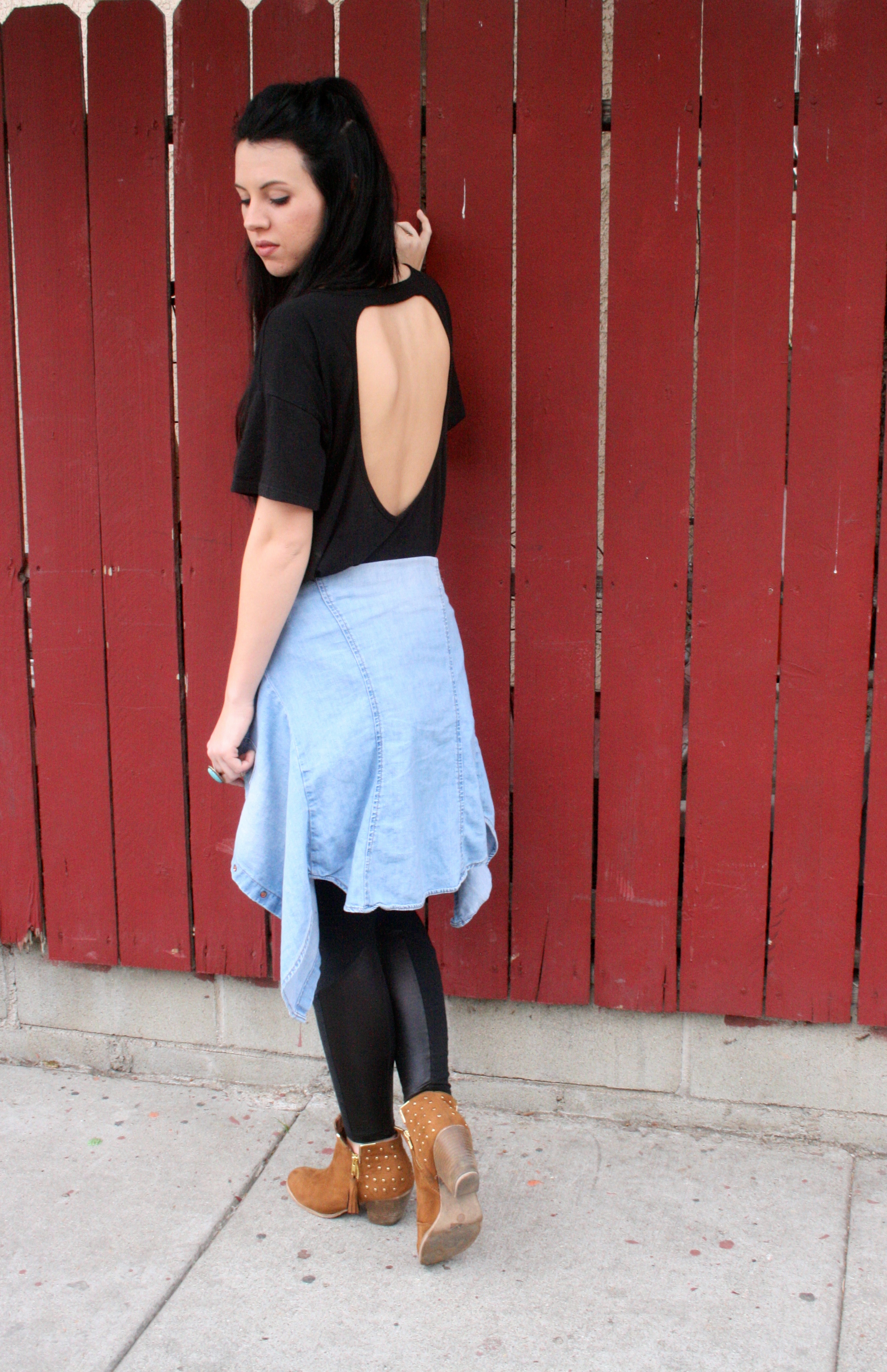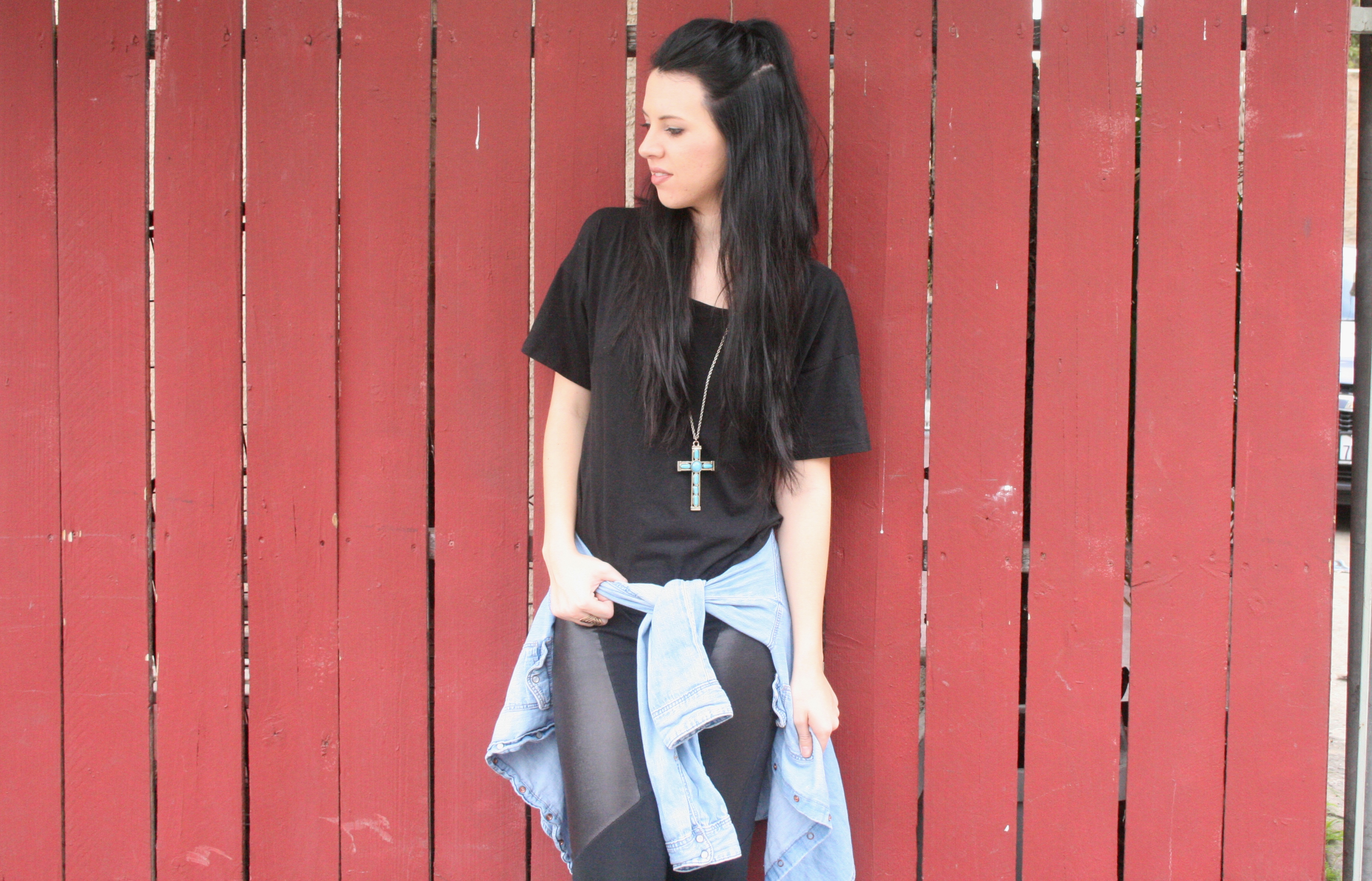 megan_hofferth_92This outfit makes me feel like I’m back in the 90’s. Okay, mostly it’s just the hair but still. If Ariana Grande can wear her hair half up, so can I..even though she does it a little TOO often. I’m always a big fan of black on black and let’s be honest, just black in general. Oh and did I mention I’m wearing a workout top?! Even though I have never worn this to work out because I don’t want to ruin it. It’s the perfect black oversized tee and I love the open back detail. Paired with my fave leggings and a denimĀ button up, this is a perfect outfit for a casual day.