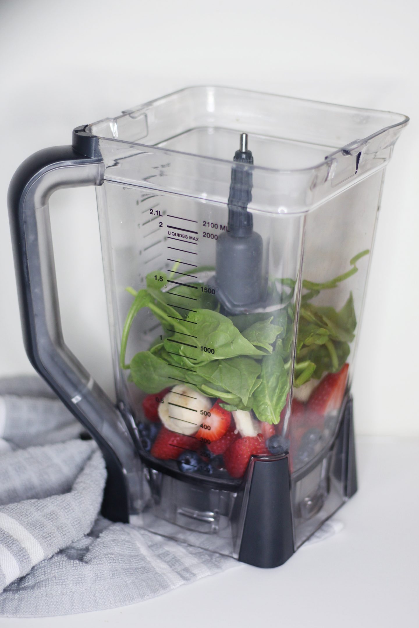 Next I add in some greens. Spinach is usually my go-to since I can use it in a variety of ways when I’m cooking. I really try not to waste too much produce when I grocery shop and I can usually find multiple ways to incorporate spinach into different meals. That being said, you can always switch this up with kale or any other green you prefer.