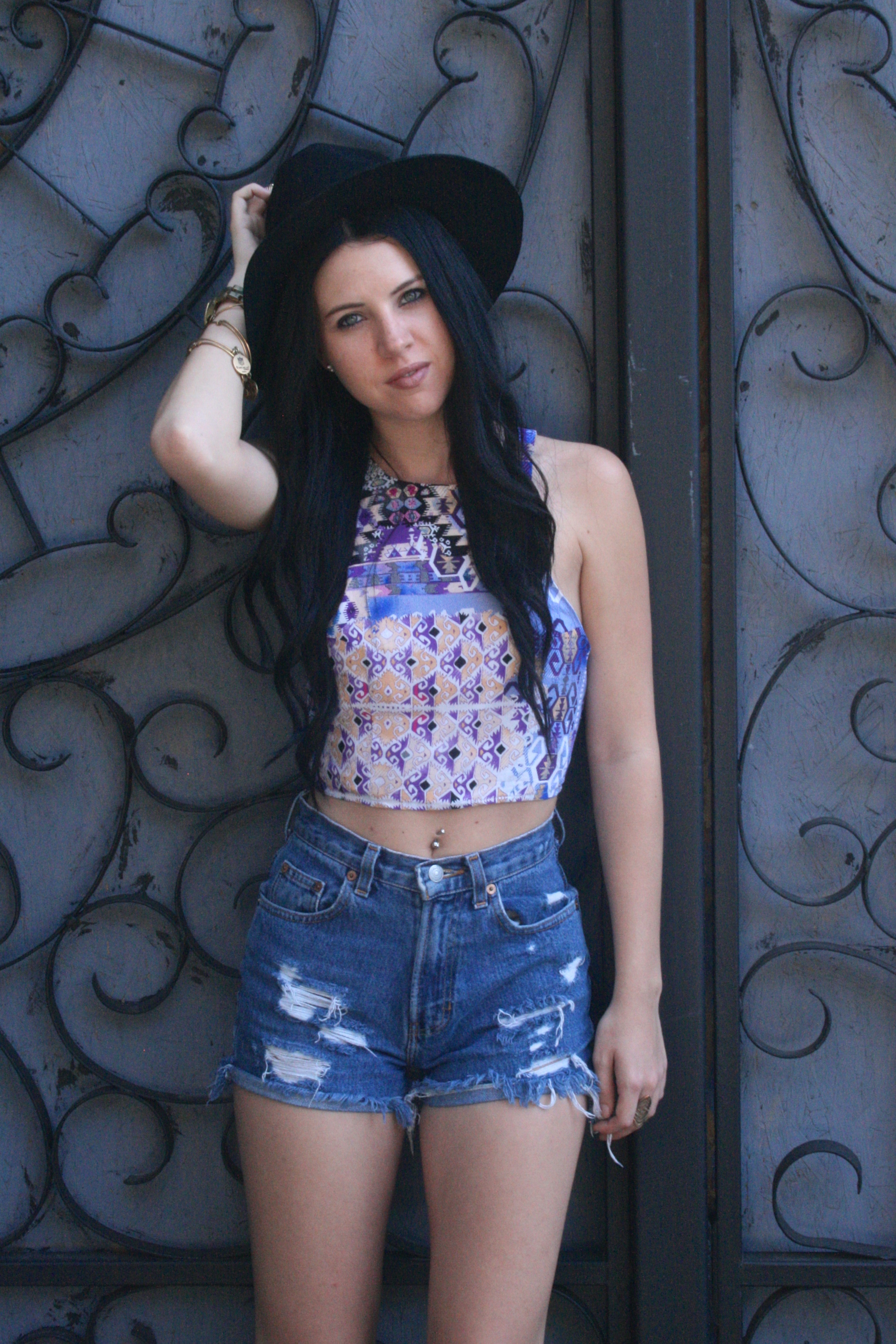 Festival season is here! And while I unfortunately am not going to Coachella or anywhere else, I thought I would post a Coachella-inspired look this week. This is definitely something I would wear if I were heading out to Indio this year. I kept it comfy and casual with a printed crop top, vintage shorts, and some of my favorite Steve Madden sandals. I topped it all off with my go-to hat from Forever 21 and some jewelry!