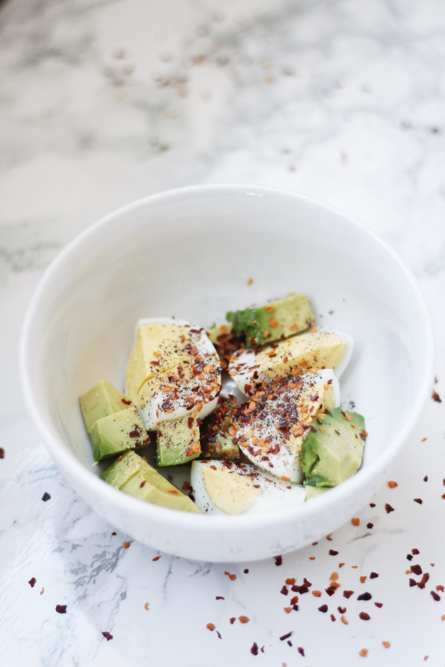 There is nothing better than a meal that takes minimal effort, but still tastes delicious. All you have to do for this avocado egg salad is toss all ingredients in a bowl and mash, mash, mash until desired consistency. Then eat it up and go about your day!