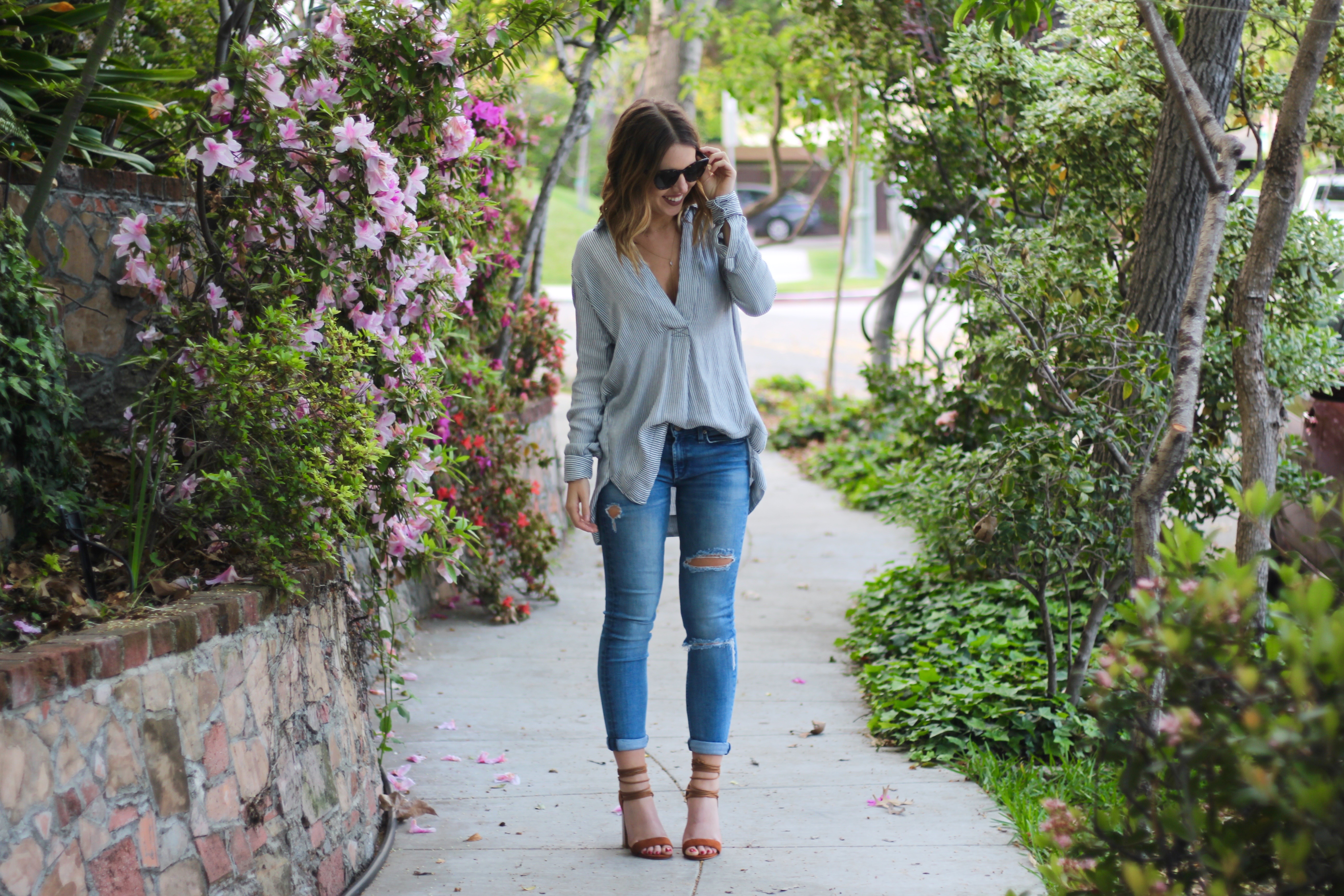 The best thing about this trend is that it is so versatile. I love wearing them with jeans and a casual top like I did in this outfit, dressing them up with a sun dress, and even pairing them with some of my favorite denim cutoffs. Lace up sandals can be worn in endless ways; there is always a way to make them work for your personal style.