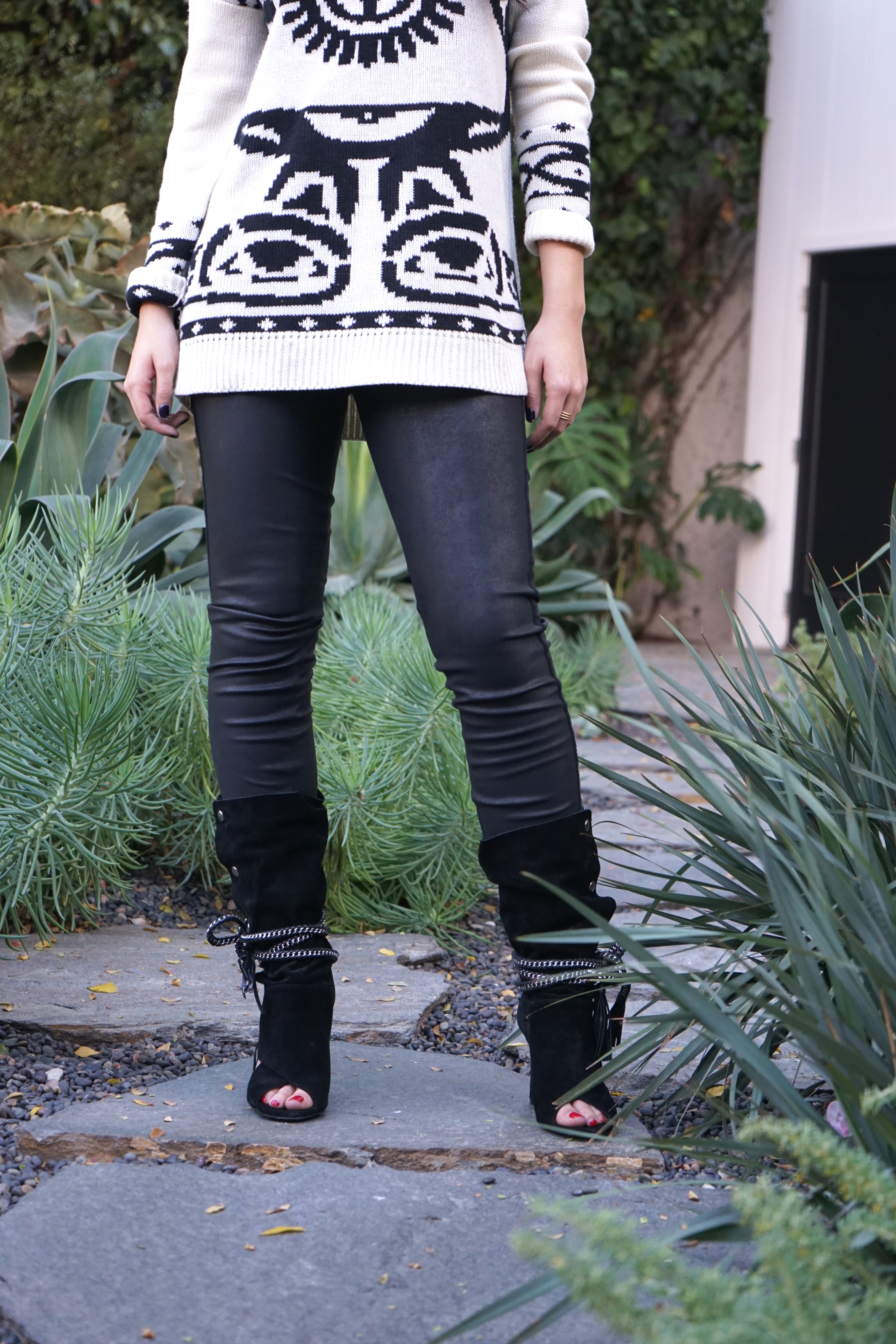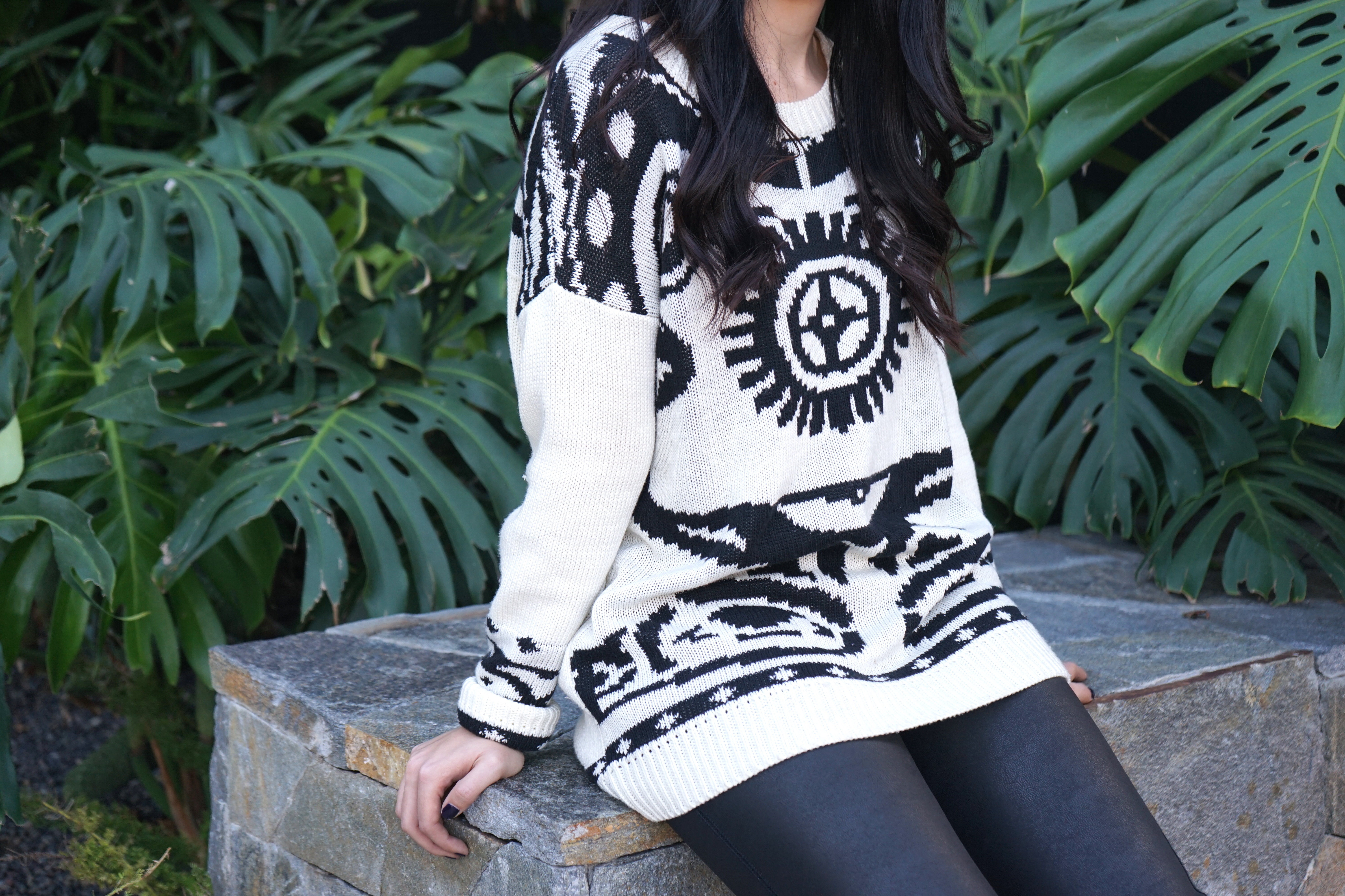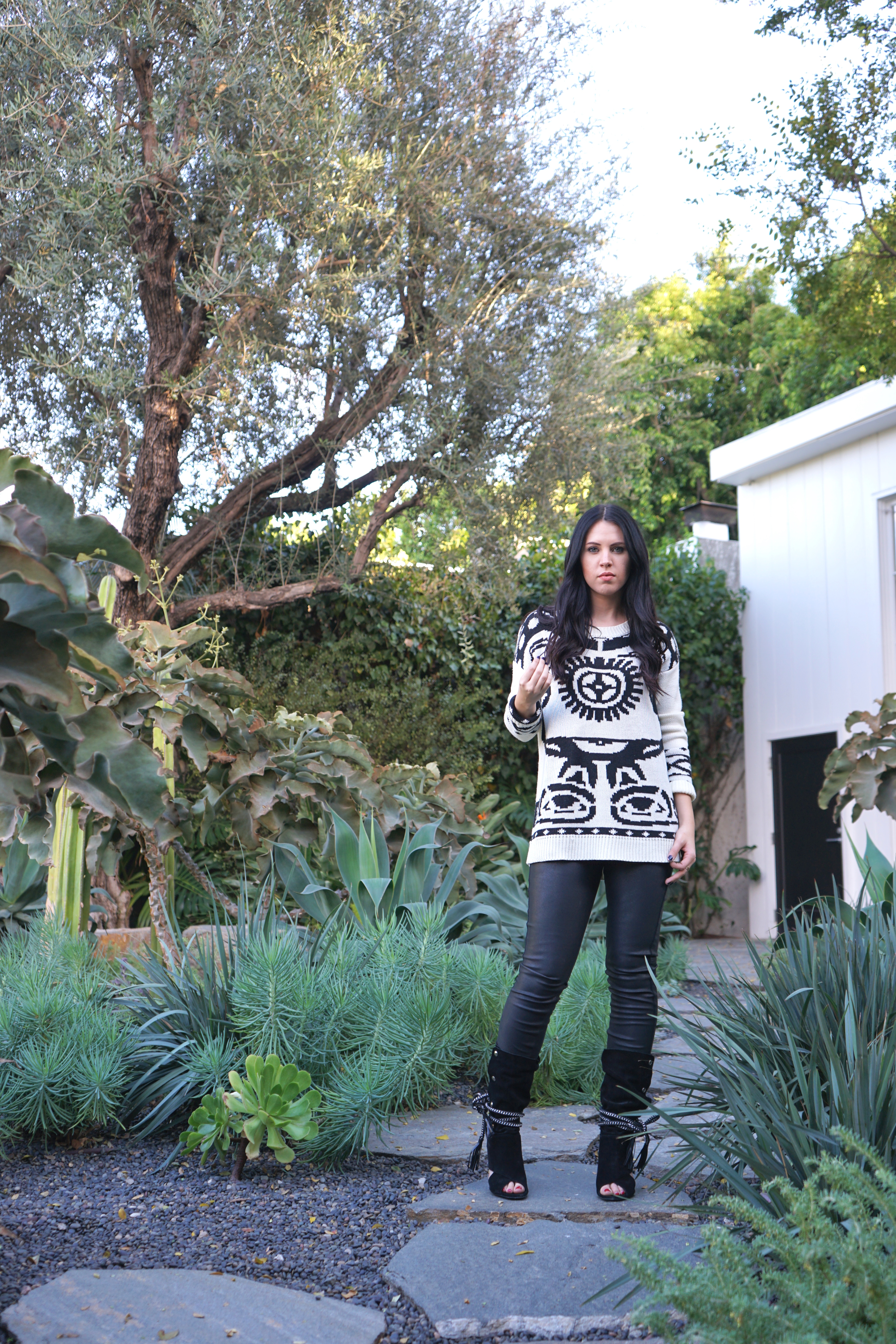 I’m so happy it is finally “holiday season.” I mean, I’ve already watched Christmas movies and had my tree up a week ago, but now it is socially acceptable to quote Buddy the Elf on a daily basis. Now I just need to start buying presents. I actually got this Minkpink sweater last year for Christmas. It’s so perfectly cozy for the winter. I love it because it is so versatile; I can dress it up with leather pants and heels as I did here or dress it down with jeans and some flats. I will definitely be living in it throughout these next few months.